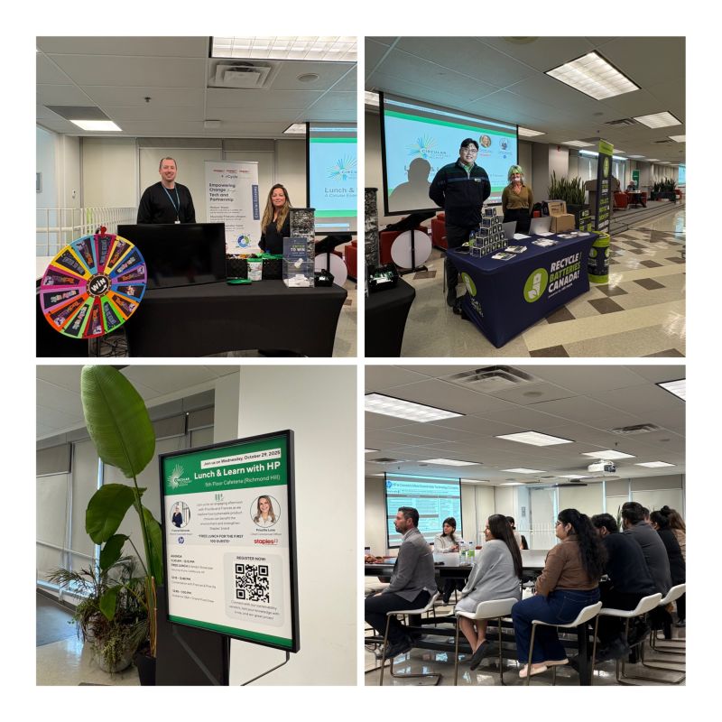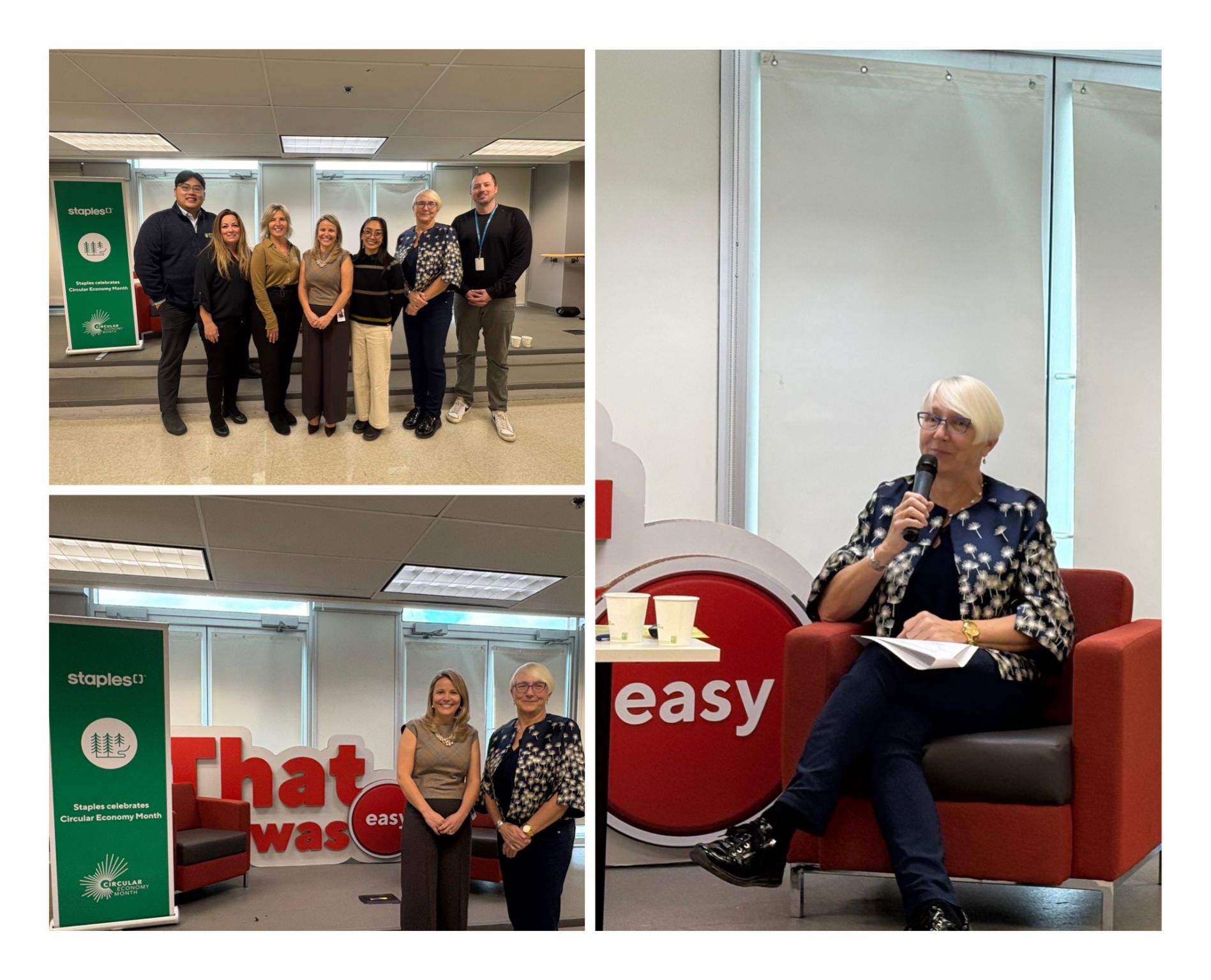 Staples Canada employee engagement with HP Canada: To wrap up Circular Economy Month, Staples Canada associates nationwide joined a Lunch and Learn with HP Canada, vendor tradeshow, and trivia.